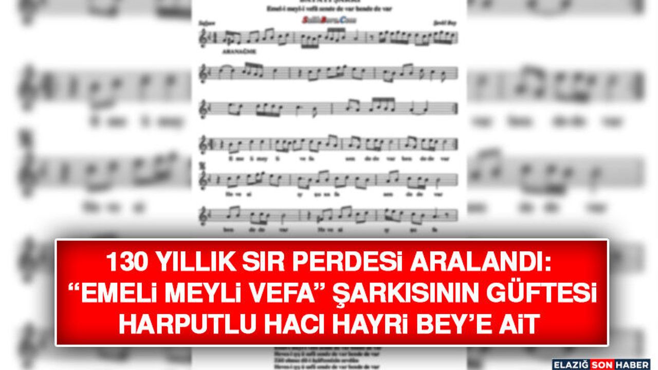Türk sanat müziğinin klasik eserlerinden biri olan “Emeli Meyli Vefa” şarkısının güftesinin Harputlu bir şaire ait olduğunun resmen tescillenmesi, Harput müziği ve kültür tarihi açısından önemli bir gelişme olarak değerlendiriliyor.