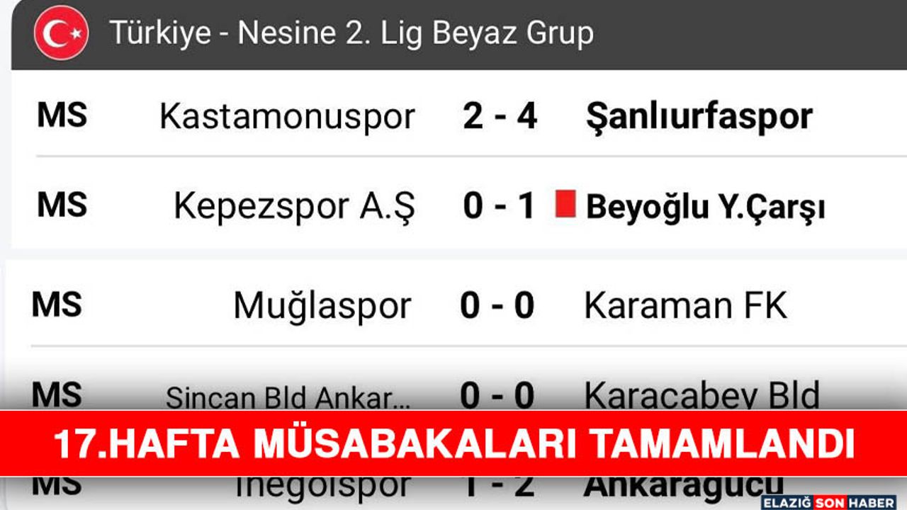 2. lig beyaz grupta 17. Hafta; oynanan 5 müsabakayla start aldı.