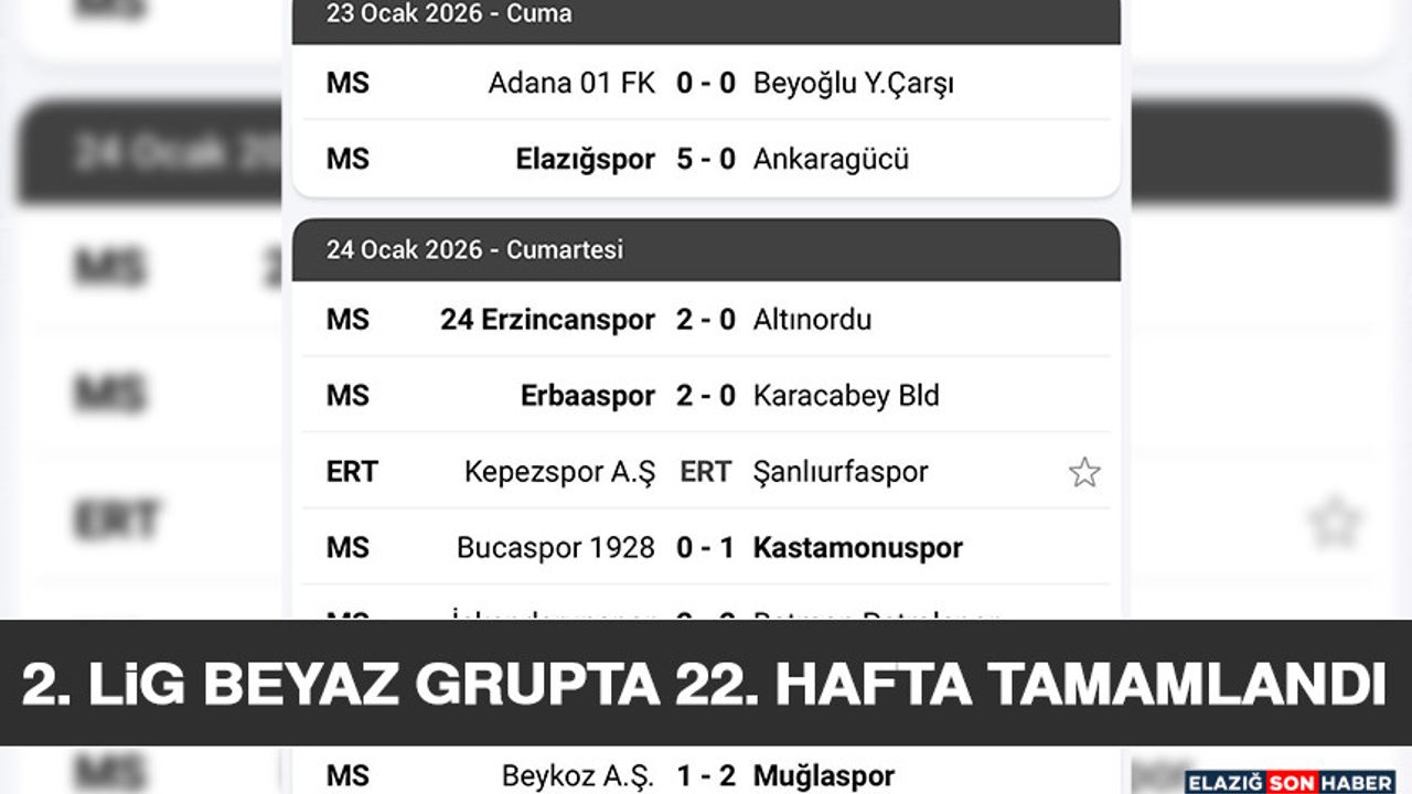 TFF 2. Lig beyaz grupta 22. Hafta müsabakaları biri dışında tamamlandı.