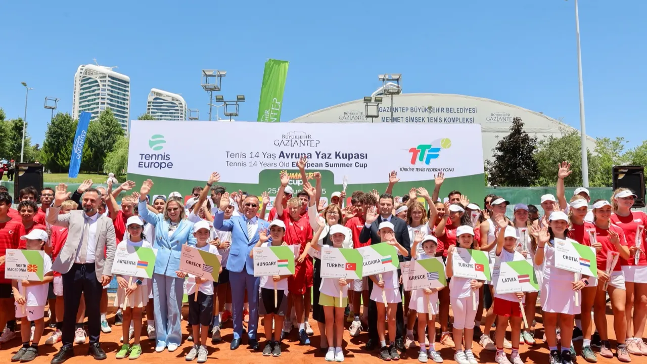 Gaziantep Büyükşehir Belediyesi ve Türkiye Tenis Federasyonu iş birliğinde, Tennis Europe çatısı altında düzenlenen Uluslararası Tenis 14 Yaş Avrupa Yaz Kupası Elemeleri başladı. GAZİANTEP (İGFA) - Bulgaristan, Yunanistan, Macaristan, Kuzey Makedonya, Ermenistan, Hırvatistan, Letonya ve Türkiye olmak üzere 8 farklı ülkenin milli sporcularının da yer aldığı, Avrupa’nın en saygın spor organizasyonlarından biri olan Yaz Kupası açılış töreni, Gaziantep Büyükşehir Belediyesi Mehmet Şimşek Tenis Kompleksi'nde yapıldı.