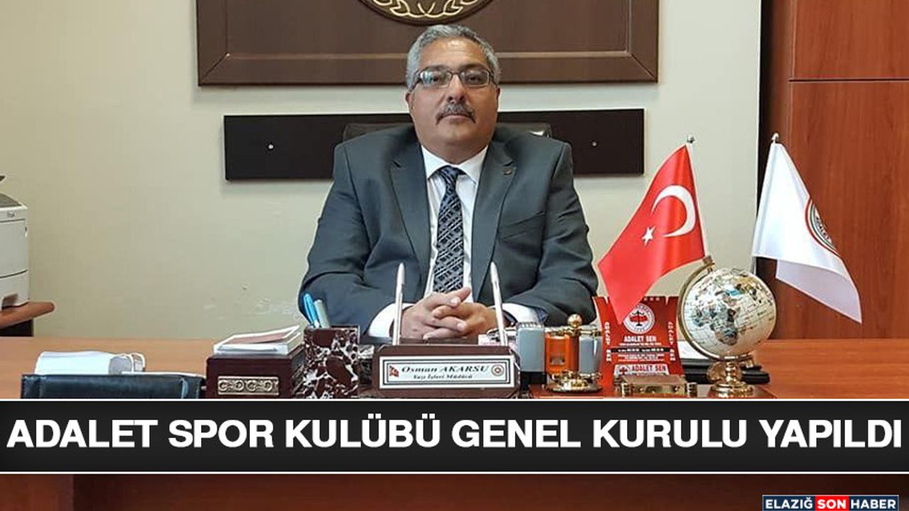 Elazığ Adalet Spor Kulübü’nün 4. Olağan Genel Kurulu, 09 Aralık 2025 tarihinde Elazığ Adliyesi Birinci Bodrum Katta bulunan Konferans Salonu’nda yapıldı.