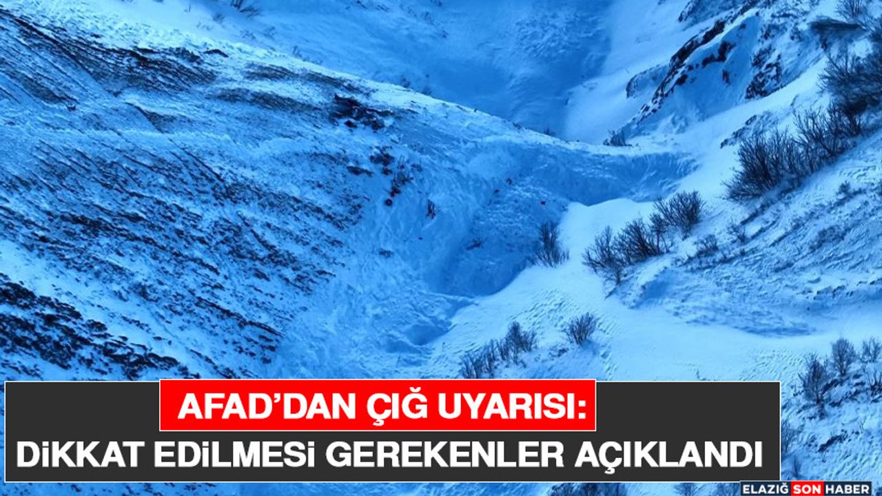 Afet ve Acil Durum Yönetimi Başkanlığı (AFAD), kar yağışının yoğun olduğu yüksek ve eğimli bölgelerde yaşayan vatandaşları çığ tehlikesine karşı uyardı. Yapılan bilgilendirmede, engebeli, dağlık ve eğimli arazilerde biriken kar tabakalarının iç ve dış kuvvetlerin etkisiyle yamacın eğim yönünde akma hareketi gösterdiği belirtildi.