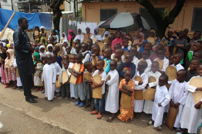 Gine'nin başkenti Konakri'deki L'ecole De Khalifa Kur'an kursunda, aralarında yetimlerin de bulunduğu 5 ile 15 yaş arasındaki 120 çocuk, Kur'an-ı Kerim'i ahşap levhalar üzerinden öğrenmeye çalışıyor.