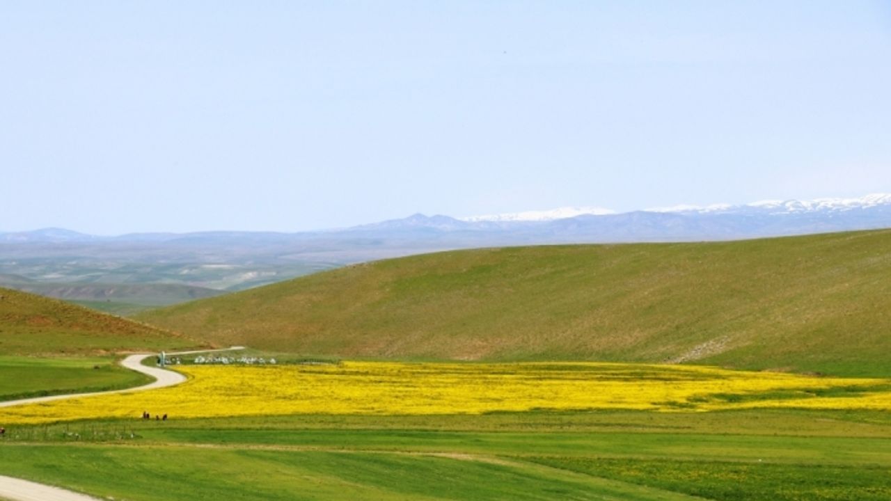 AĞRI (AA) - Ağrı'nın Tutak ilçesinde baharın gelişiyle açan düğün çiçekleri, dağlık alanlardaki tarlaları sarıya bürüdü.