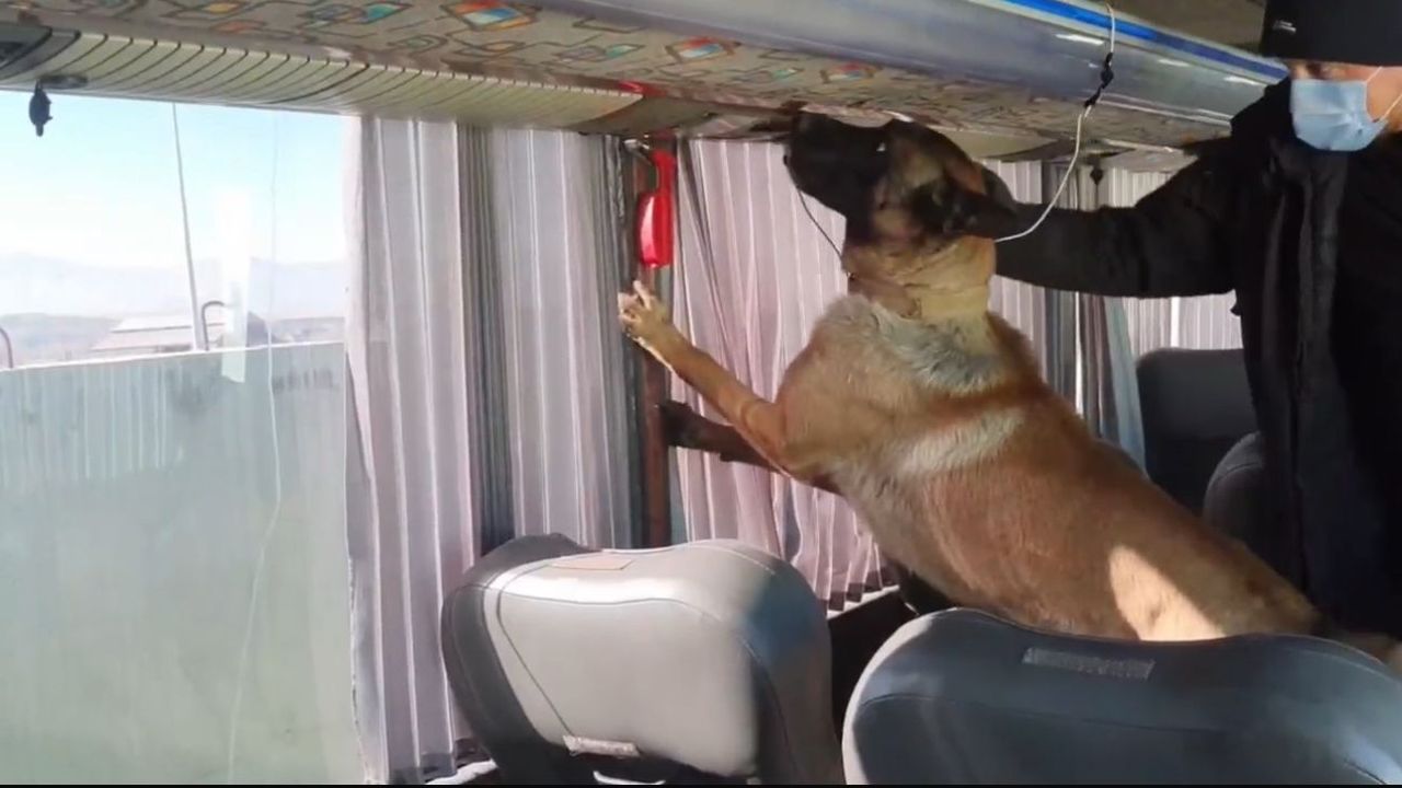 Bu kapsamda uygulama noktasına durdurulan İran plakalı otobüste, narkotik dedektör köpeği desteğiyle arama yapıldı.