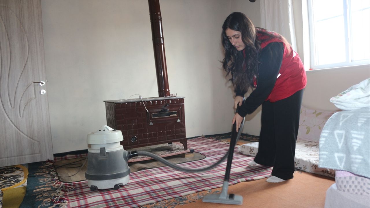 AĞRI (AA) - Ağrı'nın Doğubayazıt ilçesinde, üniversite öğrencisi Kızılay gönüllüleri, yalnız yaşayan 88 yaşındaki Karakaş Kaya'nın evinin temizliğini yaptı.
