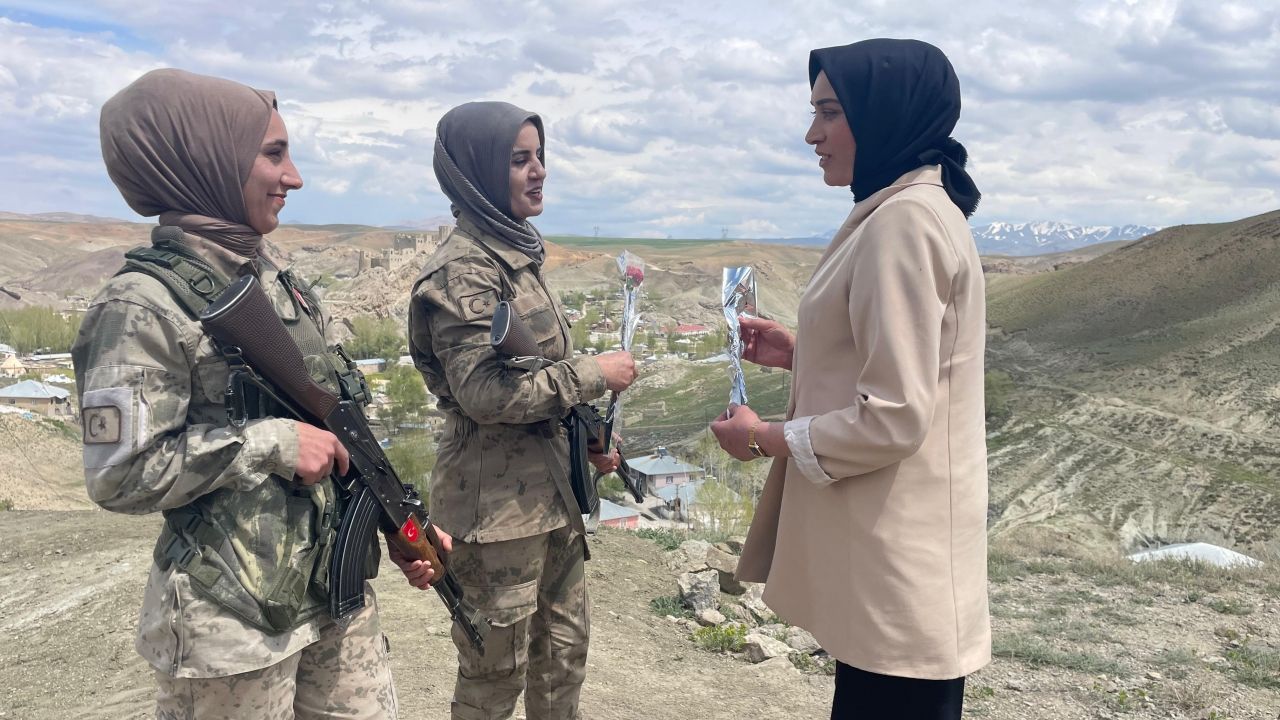 Kadın güvenlik korucularını görev başında ziyaret eden Ilıkan, onlarla sohbet etti, karanfil vererek Anneler Günü'nü kutladı.
