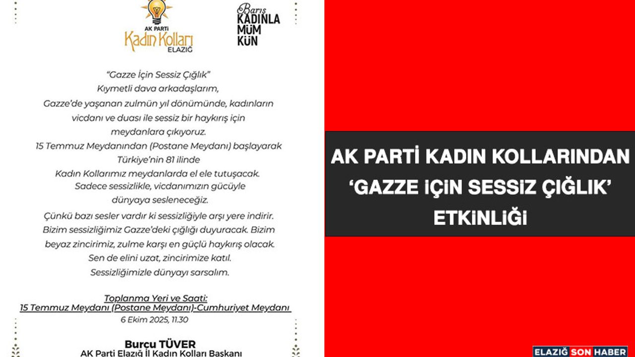 Gazze'de yaşanan insanlık dramının yıl dönümünde AK Parti Kadın Kolları Türkiye genelinde eş zamanlı olarak ‘Gazze İçin Sessiz Çığlık “ adıyla anlamlı bir etkinlik düzenleyecek.