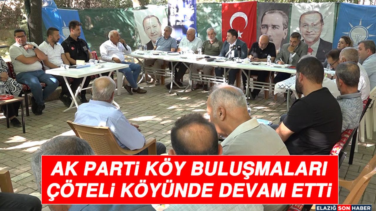 AK parti Elazığ merkez ilçe köy buluşmalarının 3. durağı merkeze bağlı Çöteli Köyü oldu. Çöteli ve civar köylerinden muhtarlar ve vatandaşlar ile bir araya gelinip istişare toplantısı düzenlendi.
