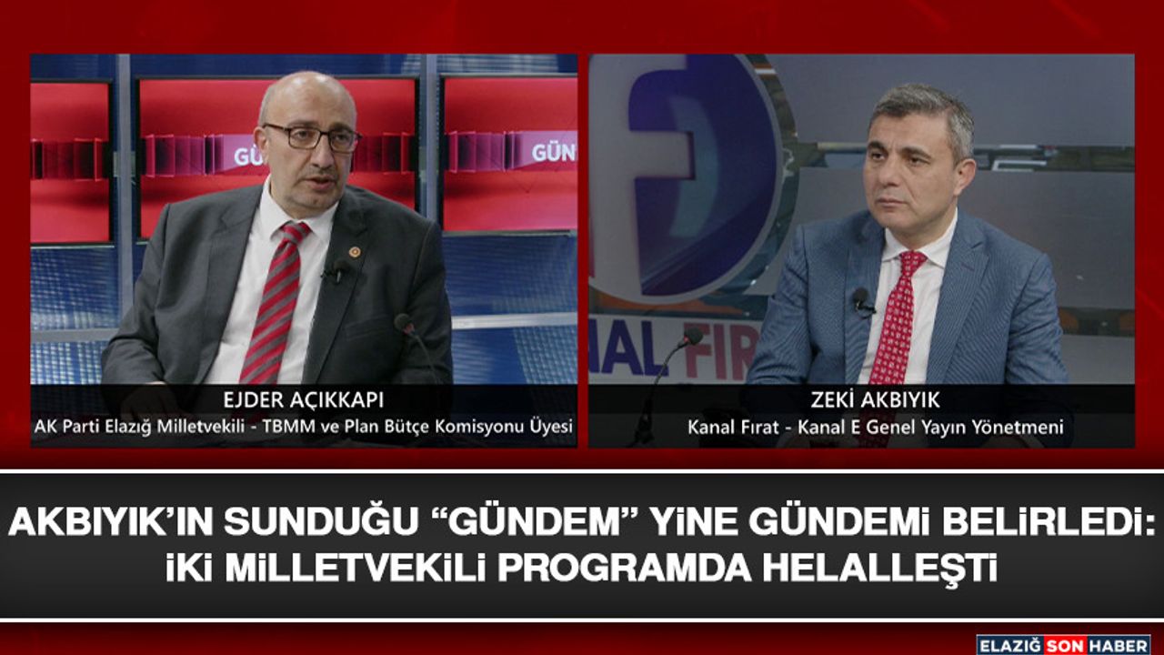 Yaşanan tartışmalara yanıt vermek ve Yatırım Alanı Programı hakkında bilgiler vermek üzere AK Parti Elazığ Milletvekili Ejder Açıkkapı, Televizyonlarımız Genel Yayın Yönetmeni Zeki Akbıyık tarafından hazırlanan gündemin konuğu oldu.