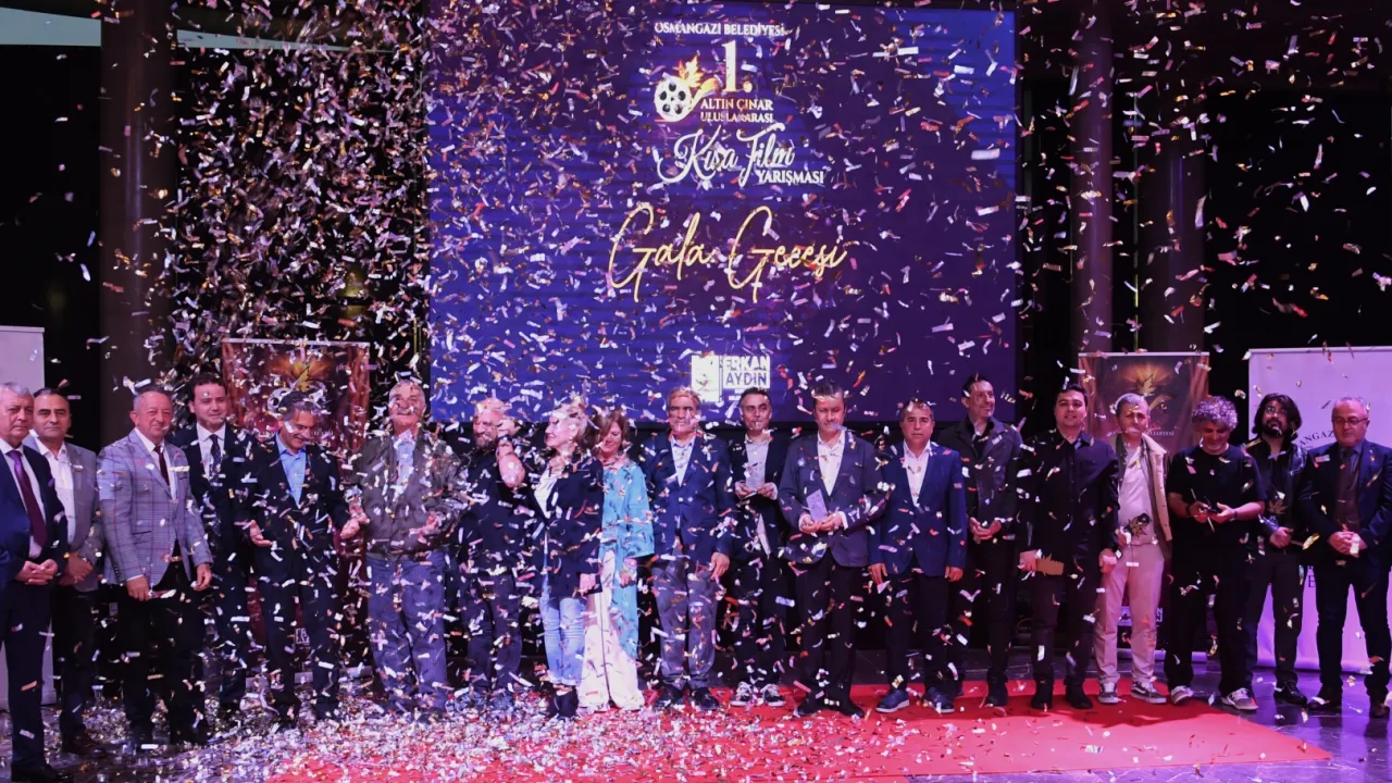 Bursa Osmangazi Belediyesi tarafından bu yıl ilk kez düzenlenen 1. Altın Çınar Uluslararası Kısa Film Yarışması'nda dereceye giren isimler, düzenlenen gala gecesi ile ödüllerini aldı.BURSA (İGFA) - ‘Adı Kısa Hikayesi Uzun’ temasıyla düzenlenen 1. Altın Çınar Uluslararası Kısa Film Yarışması’na, 149 yerli ve 24 yabancı olmak üzere toplam 173 film başvuru yaptı. Kurmaca, belgesel ve animasyon türünde filmlerin değerlendirildiği yarışmaya, dünyanın çeşitli ülkelerinden yarışmacılar eserleriyle katıldı. Başvuru yapan 173 film arasından 14 film ön jüri üyelerinin iki aşamalı değerlendirmeleri sonucu finale kaldı.