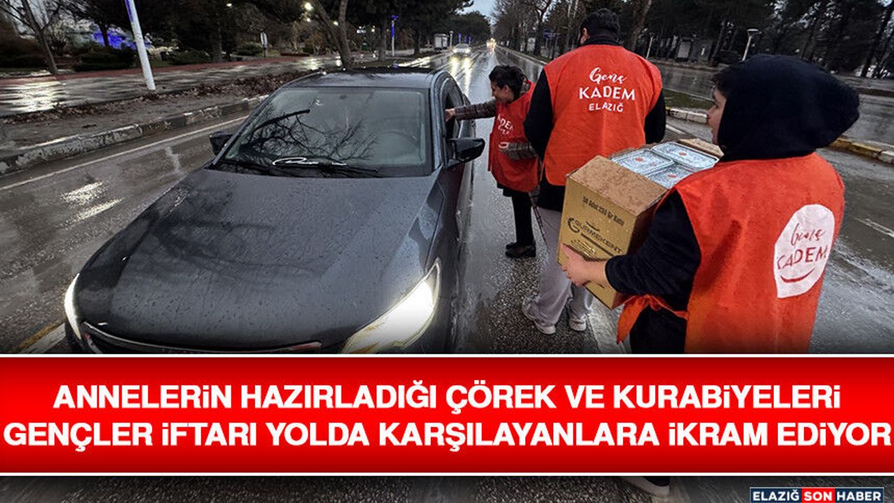 Elazığ'da Kadın ve Demokrasi Vakfı (KADEM) çatısı altında bir araya gelen gönüllü annelerin, özenle hazırladığı çörek ve kurabiyeler üniversite öğrencileri aracılığıyla iftar saatinde yolda olan sürücü ve yolculara ikram ediliyor.