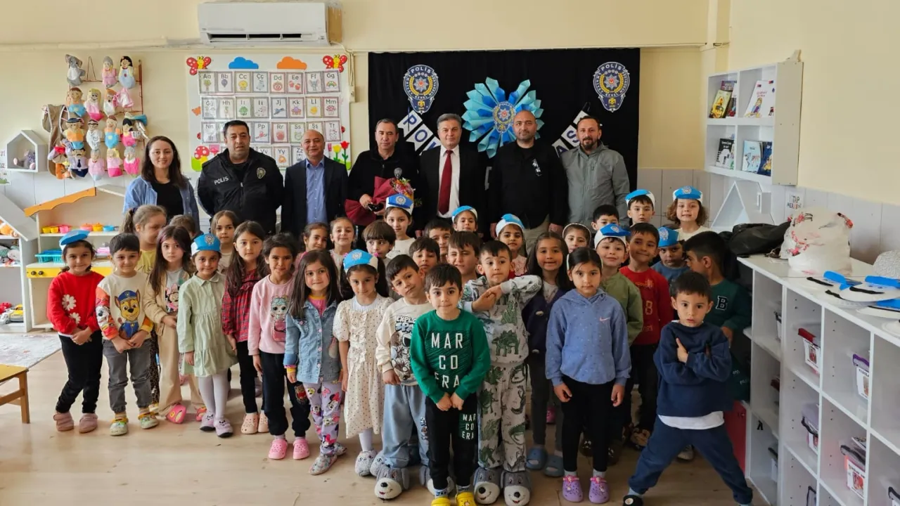 Mimar Sinan İlkokulu Müdürü Atalay Çetin'in de katıldığı etkinlikte, öğrenci ve öğretmenler polisleri çiçeklerle karşıladı.