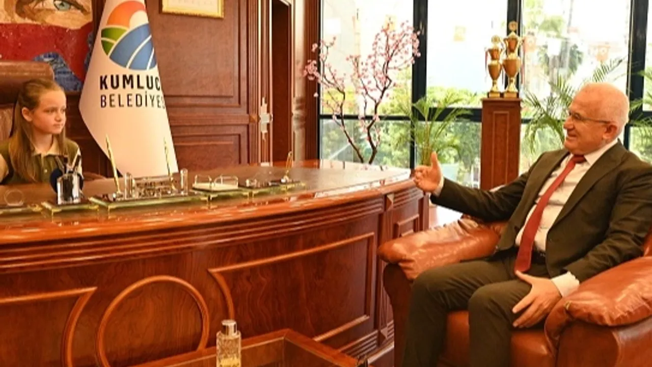 Antalya'nın Kumluca ilçesi'nde Kumluca Belediye Başkanı Mesut Avcıoğlu, 23 Nisan kutlamaları çerçevesinde başkanlık makamını Atatürk İlkokulu 4-C sınıfı öğrencisi Ecrin Yetgin’e devretti.Mehmet ŞENTÜRK / ANTALYA(İGFA)- Küçük Başkan Yetgin, 23 Nisan’ın ruhuna uygun olarak gerçekleştirilen devir teslim töreninde, geleceğe dair hayallerini ve isteklerini büyük bir özgüvenle dile getirdi.