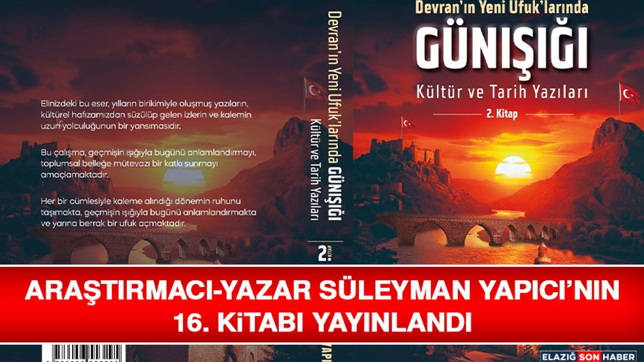 Elazığ’ın kültürel, tarihî ve sosyal hafızasına önemli katkılar sunan Araştırmacı-Yazar Süleyman Yapıcı, yazın hayatındaki 16. eserini okuyucularla buluşturdu. “Devran’ın Yeni Ufuk’larında Günışığı Kültür ve Tarih Yazıları” adlı çalışma, 3 cilt ve toplam 1104 sayfadan oluşuyor.