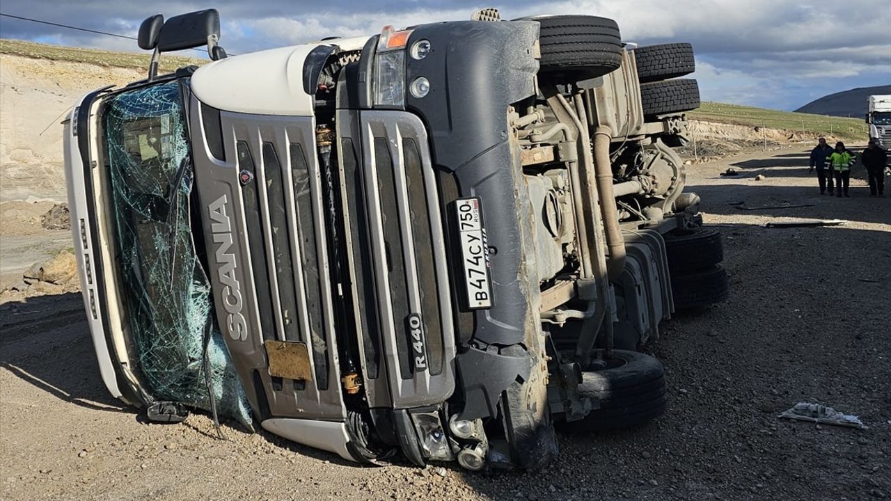 ARDAHAN (AA) - Ardahan'da devrilen tırın sürücüsü yaralandı.