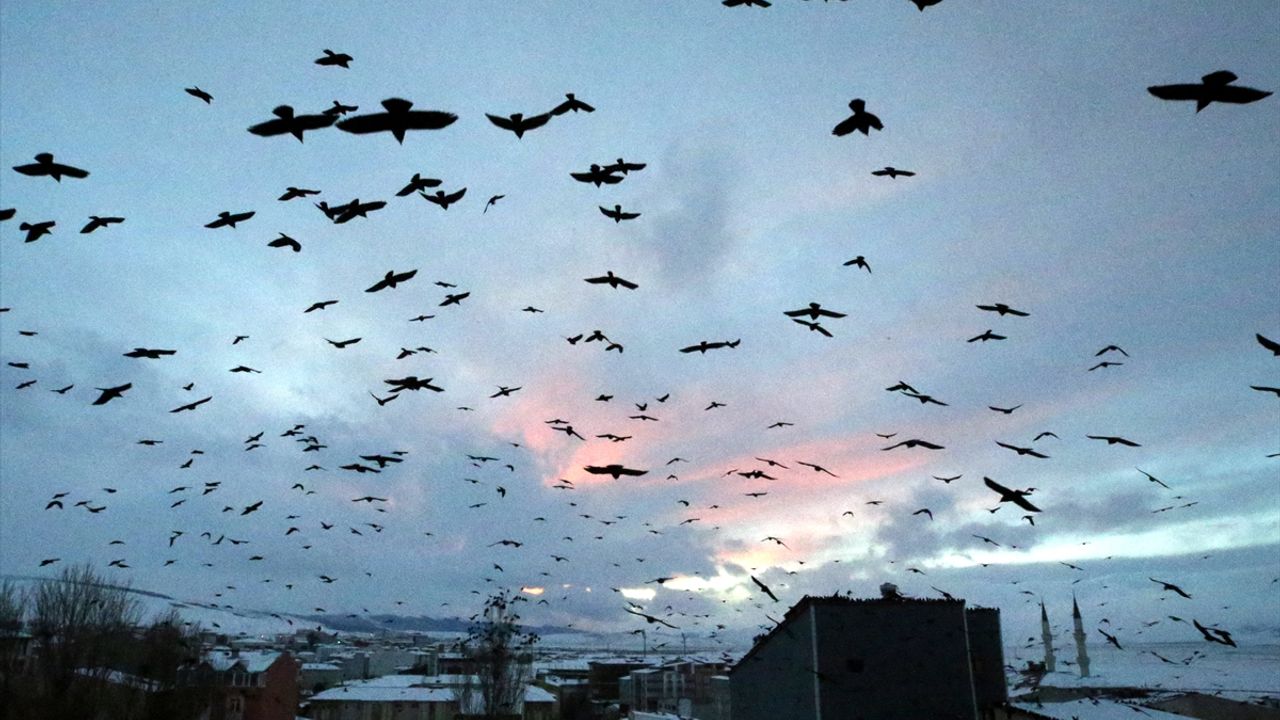 Akşam saatlerinde kent merkezi semalarında çok sayıda kuş toplandı.