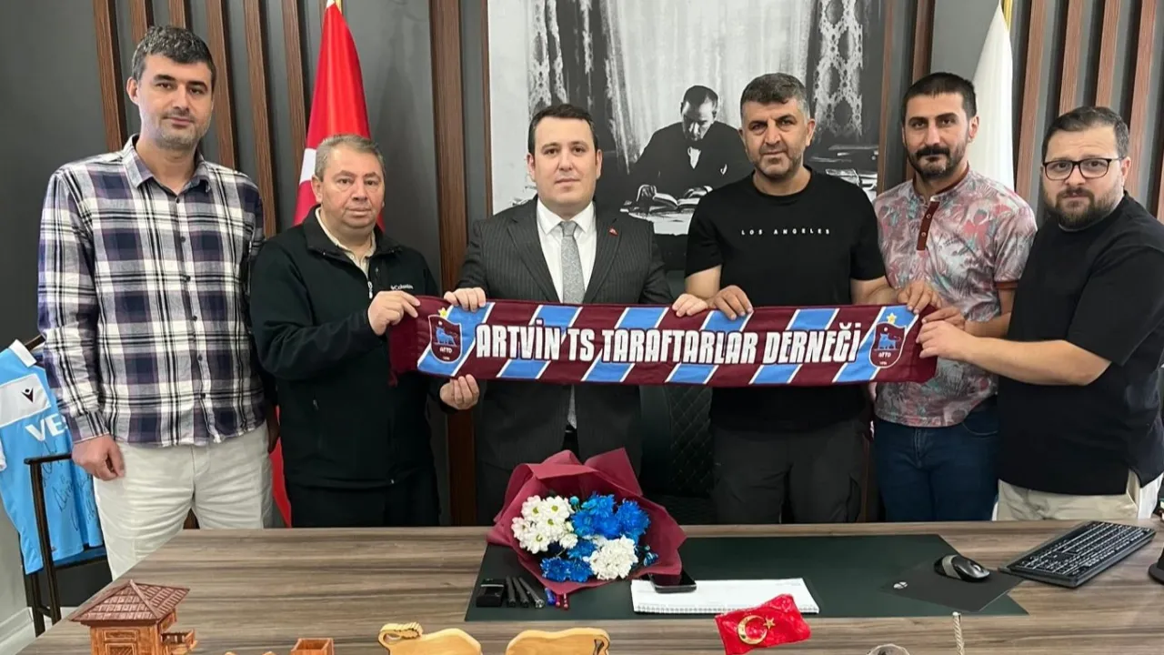 Artvin Trabzonspor Taraftarlar Derneği yönetimi, yeni atanan Trabzonlu Cumhuriyet Başsavcısı Murat Çalış’ı makamında ziyaret ederek 'hayırlı olsun' diledi. Başsavcı Çalış, Trabzonlu olduğunu ve bordo-mavili renklere gönül verdiğini belirterek derneğe teşekkür etti.ANKARA (İGFA) - Artvin Trabzonspor Taraftarlar Derneği Başkanı Bayram Sarayoğlu ve yönetim kurulu üyeleri Murat Emre Reis, Fahrettin Şahin, Fahrettin Alkan ile Murathan Taşkın, Artvin Cumhuriyet Başsavcısı olarak atanan Trabzonlu Murat Çalış’ı makamında ziyaret etti.