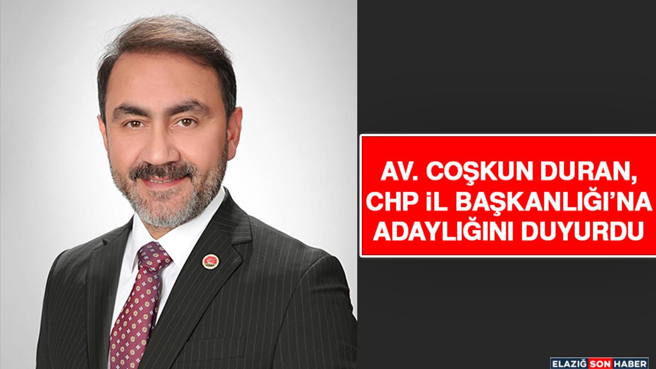 Kongre öncesi, 2021-2023 yılları arasında CHP Elazığ İl Başkanlığı görevini yürüten Avukat Coşkun Çağlar Duran, yapılacak kongrede il başkanlığına aday olduğunu açıkladı.