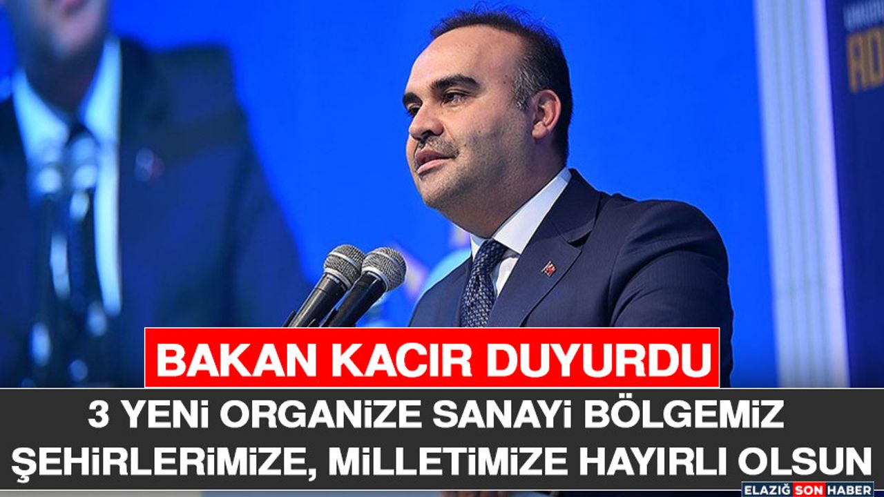 Bakan Kacır, "Ülkemizin planlı sanayi alanlarını büyütmeye, üretim altyapısını güçlendirmeye devam ediyoruz. 3 yeni Organize Sanayi Bölgemiz şehirlerimize, milletimize hayırlı olsun. Elazığ Kovancılar OSB, Kastamonu Araç İhsangazi OSB, Kırıkkale Balışeyh OSB. 2002 yılında 191 olan OSB sayımız bugün 373'e ulaştı. 2 milyon 700 bin emekçimiz OSB'lerde çalışıyor. Sanayide yeni hamlelerle ülkemizin dört bir yanını yatırımlarla buluşturmayı sürdüreceğiz" dedi.
