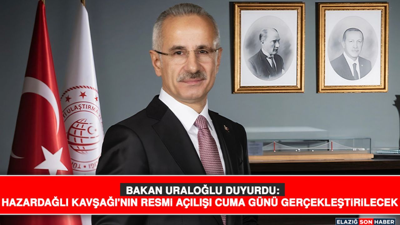 Ulaştırma ve Altyapı Bakanı Abdulkadir Uraloğlu, Elazığ'ın şehir içi ulaşımını rahatlatacak Hazardağlı Kavşağı'nın resmi açılışını 12 Eylül Cuma günü gerçekleştirecek. Sadece 45 günde tamamlanan proje ile Elazığ trafiğine yeni bir soluk getirildiğini ifade eden Uraloğlu, "Elazığ-Malatya Yolu'nun Keban Yolu ve Güney Çevre Yolu ile kesiştiği noktada hizmet veren Hazardağlı Kavşağı'nı 'yeni nesil kavşak' olarak inşa ettik. Böylece bekleme sürelerini önemli ölçüde azalttık" açıklamasında bulundu.