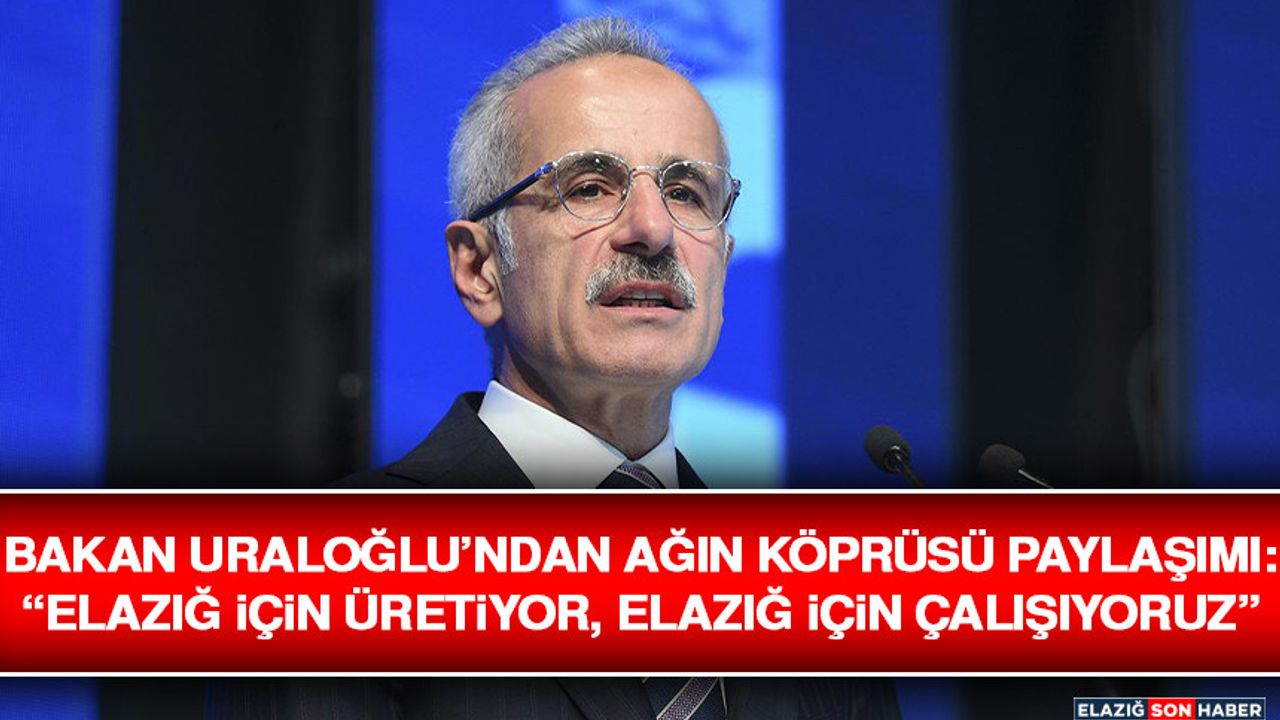 Ulaştırma ve Altyapı Bakanı Abdulkadir Uraloğlu, sosyal medya hesabından yaptığı paylaşımla Elazığ’ın önemli ulaşım yatırımlarından biri olan Ağın Köprüsü’ne dikkat çekti.