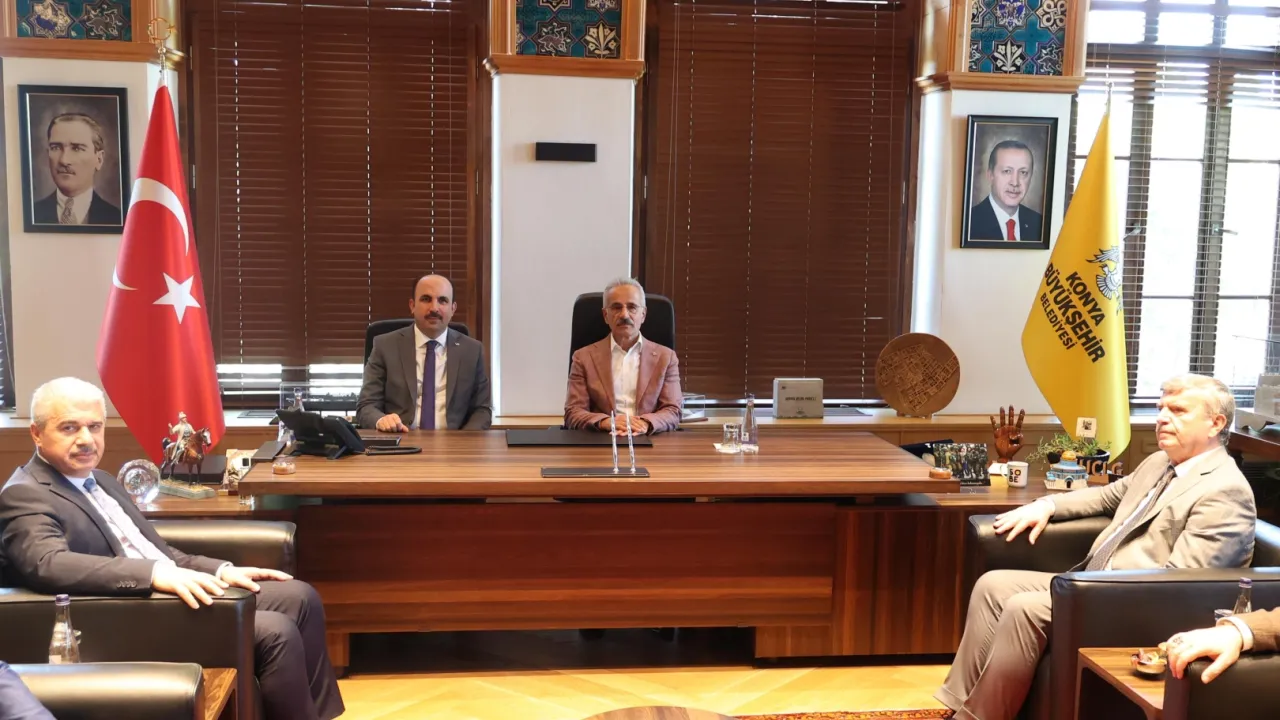 Konya Büyükşehir Belediyesi Taş Bina’da gerçekleşen ziyarette, Konya’da bulunmaktan dolayı duyduğu memnuniyeti dile getiren Bakan Uraloğlu, Başkan Altay’a ulaşım alanında yaptıkları işbirliği için teşekkür etti.