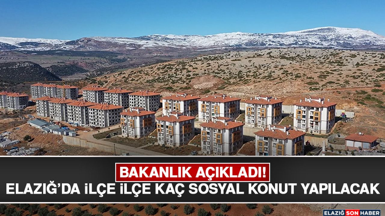 Bakanlığın açıklamasına göre Elazığ genelinde toplam 3.685 adet sosyal konut inşa edilecek. Açıklamada, Elazığ merkez ve bağlı beldelerde yapılacak konut sayıları da tek tek paylaşıldı. Buna göre Elazığ Merkez en fazla konut yapılacak bölge olurken, toplam 2.500 sosyal konut inşa edilecek.