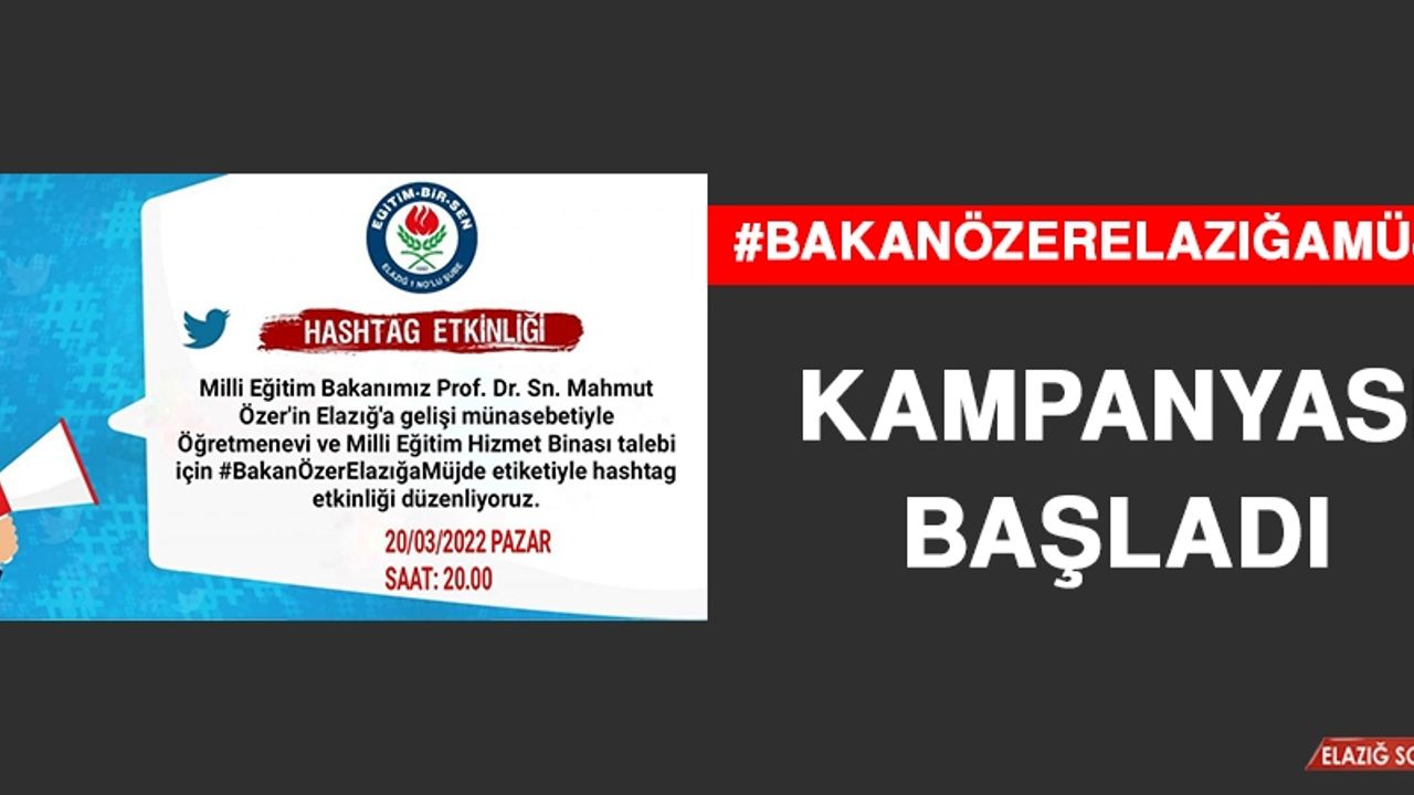 Eğitim Bir Sen Elazığ Şubesi tarafından Twitter’da #BakanÖzerElazığaMüjde hasthagı ile kampanya gerçekleştiriliyor.