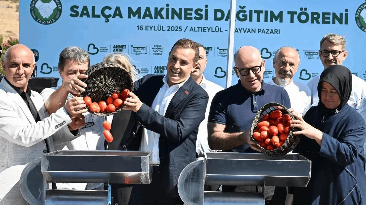 Salça Dağıtım Töreni’ne CHP Balıkesir Milletvekili Serkan Sarı, Altıeylül Belediye Başkan Yardımcısı Ertan Kayatepe, Balıkesir Ziraat Odası Başkanı Rahmi Demirbay ve çok sayıda üretici katıldı. Makineler, ziraat odaları aracılığıyla mahalle muhtarlarına teslim edilerek ihtiyaç sahibi üreticilerin kullanımına sunulacak.