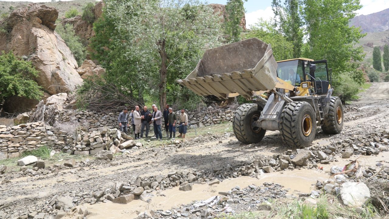 VAN (AA) - Van'ın Başkale ilçesinde etkili olan sağanağın ardından meydana gelen sel hasara yol açtı.