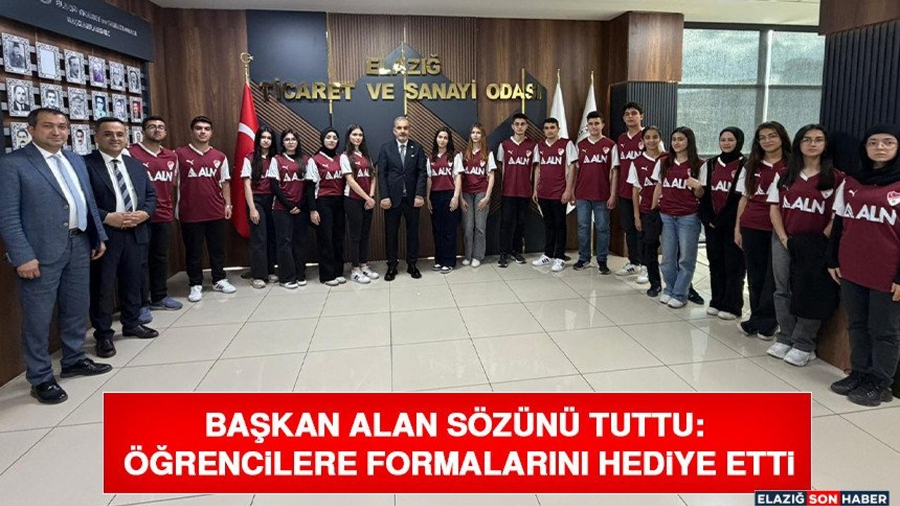 Başkan Alan konuşmasında, “Çubukbey Anadolu Lisesi’nin kıymetli öğrencilerini ve yöneticilerini odamızda ağırlamaktan büyük memnuniyet duyuyorum. Okul ziyaretimizde öğrencilerimize forma sözü vermiştik. Bugün bu sözümüzü yerine getirmenin mutluluğunu yaşıyoruz. Kendi şirketimizin logosuyla hazırlanan formaları gençlerimize takdim ediyoruz. Ayrıca öğrencilerimizi Elazığspor’un maçına davet ediyoruz. İnşallah takımımız play-off sürecinde hak ettiği başarıyı elde ederek bir üst lige çıkar” dedi.