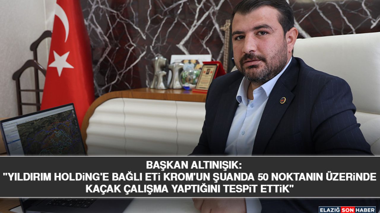 Elazığ'da faaliyet yürüten Yıldırım Holding bünyesindeki Eti Krom A.Ş., 2 Temmuz 2024'te işçilerin grevi ile gündeme gelmişti. İşçilerin grev kararı almasının ardından Elazığ'a gelen ve yaptığı toplantıda işçileri azarlayan Eti Krom A.Ş. sahibi Ali Rıza Yıldırım, büyük tepkiler almıştı. İşçilerin arkasında duran Alacakaya Belediye Başkanı Zafer Altınışık, şuanda 50 noktanın üzerinde kaçak çalışma yapıldığını tespit ettiklerini ifade etti. MAPEG'in yaptığı dron çalışmalarında ise 400'ün üzerinde usulsüz izin ve aşımların tespitinin mevcut olduğunu iddia eden Başkan Altınışık, ilk şikayeti geçen yılın 8'inci ayında yaptıklarını, MAPEG'ın gelerek şirkete ceza yazdığını ve 15 gün önce de ikinci şikayeti yaptıklarını söyledi. Eti Krom'u 2005 yılından bugüne kadar burada haksız kazanç elde ettiğini savunan Altınışık, bunların tespitli ve ispatlı olduğunu aktardı.