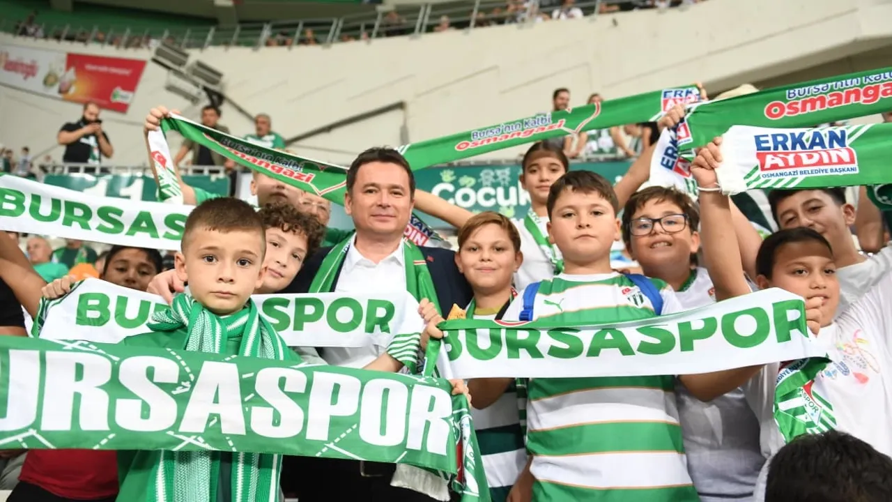 BURSA (İGFA) - Bursaspor’a verdiği desteklerle ön plana çıkan Osmangazi Belediye Başkanı Erkan Aydın, hayatında hiç Bursaspor maçını stattan izlememiş çocukları maça götürerek onların mutluluğuna ortak oldu.
