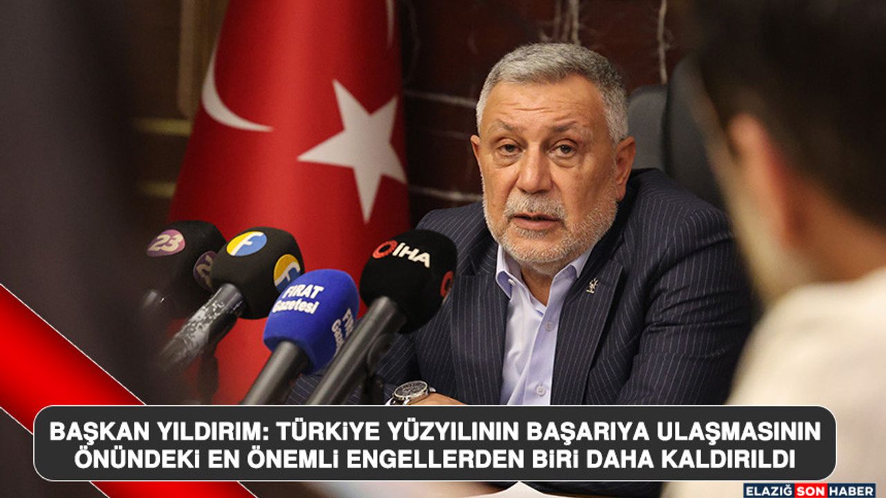 AK Parti Elazığ İl Başkanı Yıldırım, İl Başkanlığında Cumhurbaşkanı Recep Tayyip Erdoğan'ın 12 Temmuz'da yaptığı açıklamaları değerlendirdi. Türkiye'nin terörle mücadelesinde yeni bir döneme girdiğini belirten Yıldırım, "Terörsüz Türkiye projesi bir müzakere değil, devletimizin kararlı duruşunun sonucudur" dedi. Ayrıca, Cumhurbaşkanı Erdoğan'ın terörsüz Türkiye vizyonuna tam destek verdiklerini vurguladı.