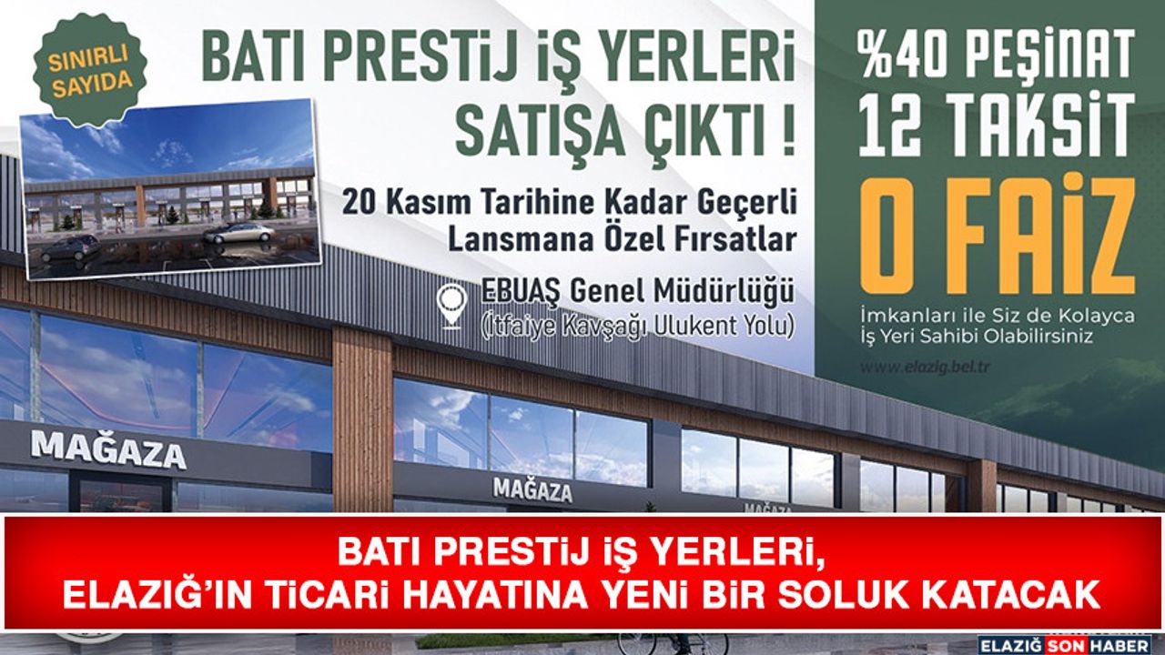 Malatya Caddesi'ne sıfır konumda ve prestijli bir lokasyonda ticari faaliyet yürütme fırsatına sahip olmak isteyenler, %40 peşinatla 12 ay eşit taksit imkanı ve 0 faiz avantajı ile Batı Prestij Konutları içerisinde iş yeri sahibi olabilecek.