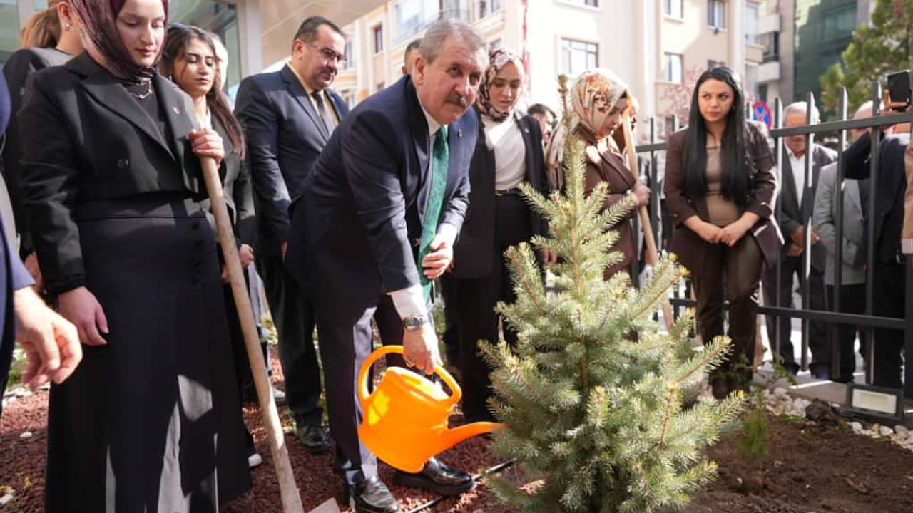 Partiden yapılan açıklamaya göre, Destici, parti genel merkezinin önünde gerçekleştirilen etkinlikte 3 çam fidanını toprakla buluşturdu.