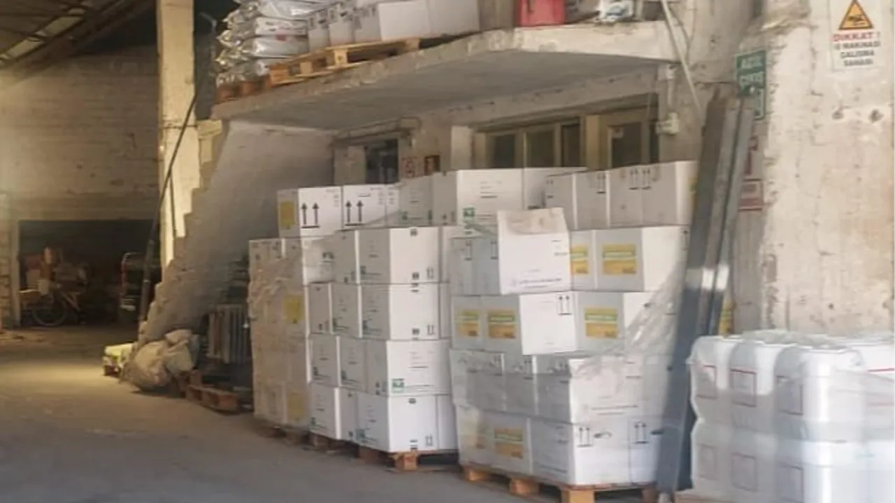 Denetimde, izinsiz bir binada 2.511 adet, toplam 4545 litre ve 723 kg bitki koruma ürünü tespit edildi.
