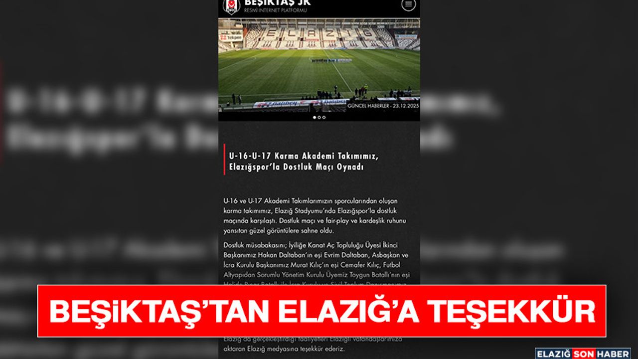 Beşiktaş kulübü, Elazığ’da gerçekleştirilen “iyiliğe kanat aç” projesinden duyulan memnuniyeti dile getiren bir açıklama yayınladı.
