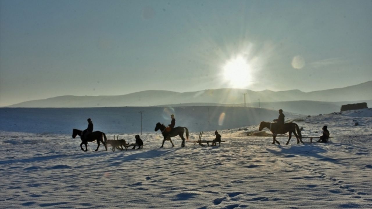 Karabey köyünde de soğuğa aldırış etmeyen çocuklar atlı kızaklarla kayarak eğlenceli vakit geçiriyor. Köy sakinleri, boş zamanlarında atlara bağladıkları kızaklara bindirdikleri çocukların keyifli zaman geçirmesini sağlıyor.