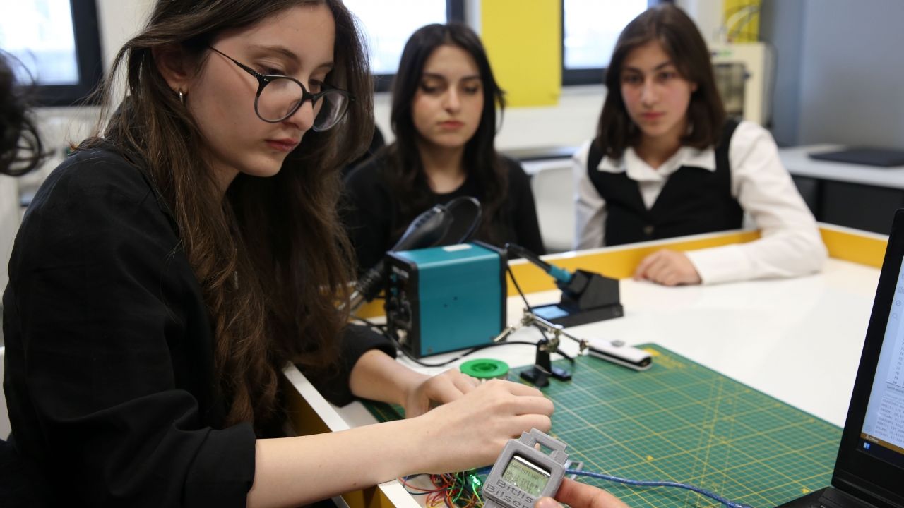 "BİLSEM olarak burada gerçek yaşam problemlerine yönelik projeler üretiyoruz. Depremden etkilenen öğrencilerimizden geçen yıl bir grup oluşturarak bir proje geliştirmeye karar verdik. Hazırladığımız projemiz TEKNOFEST'te desteklenmeye layık görüldü. Bu yıl projemizi geliştirerek yeniden TEKNOFEST'e başvurduk. Deprem sonrası enkaz altında canlarımız kalıyor. Projemiz bu canlarımızı kurtarmaya, onların yerlerini ve konumlarını tespit etmeye yönelik. Tasarlanan bileklikte GPS, kişinin yaşam belirtisinin algılanması için nabız ve oksijen, sarsıntının da algılanabilmesi için gyro sensörü bulunuyor. Şiddetli sarsıntı algılandığında kişinin hem yaşam belirtisi ve nabzı hem de konum bilgisi acil durum ekiplerine gönderilebiliyor."