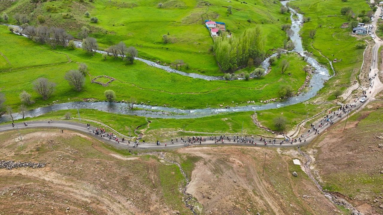 Vali Ahmet Hamdi Usta'nın da yer aldığı yürüyüşte, yaklaşık 1000 kişilik bir grup köyden yürüyüşe başladı.