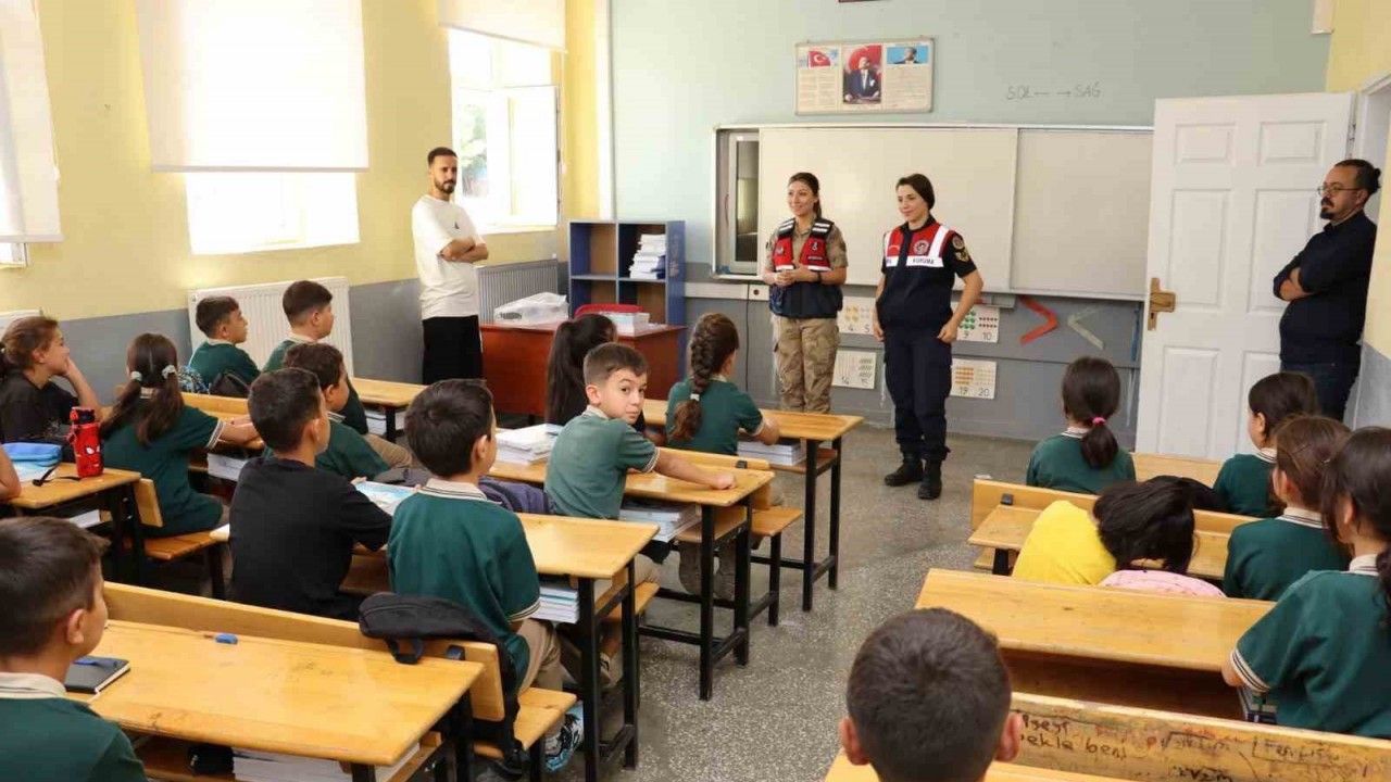 Bingöl’de jandarma ekipleri, öğrencilerle bir araya gelerek ilk gün heyecanlarına ortak oldu.