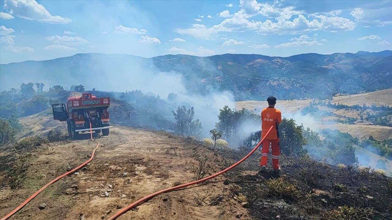 Açıkgüney köyündeki meşelik alanda, henüz belirlenemeyen nedenle yangın çıktı.