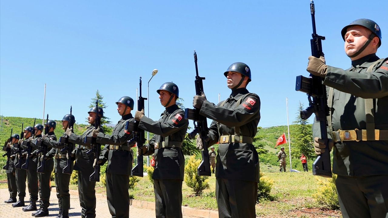 Şehitler için manga atışı yapıldı, ardından saygı duruşunda bulunuldu ve İstiklal Marşı okundu.