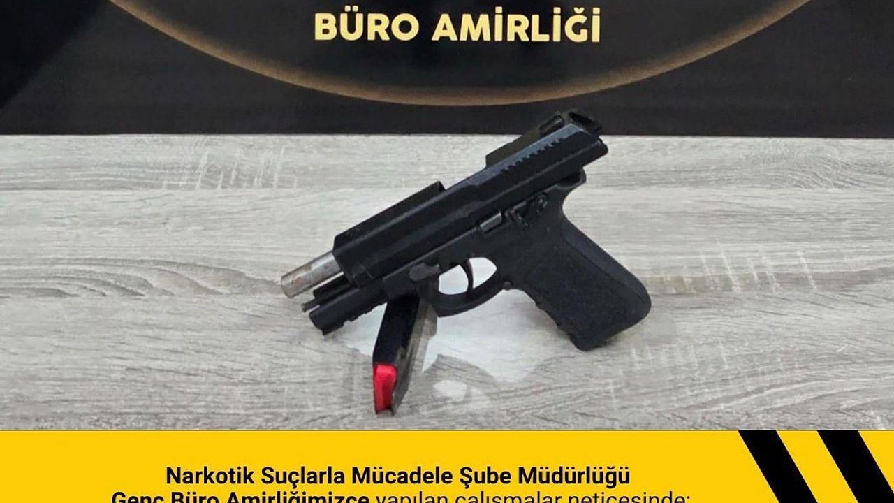 Bingöl’de polis ekiplerince yapılan çalışmada ruhsatsız tabanca ve esrar maddesi ele geçirildi.