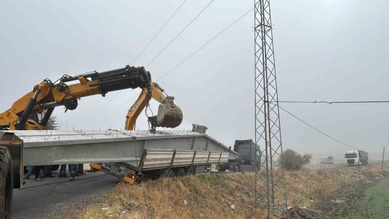 Bingöl’de çiftlik için çatı bloğu taşıyan tır, virajı alamayınca yan yattı. Yaralananın olmadığı kazada, maddi hasar meydana geldi.