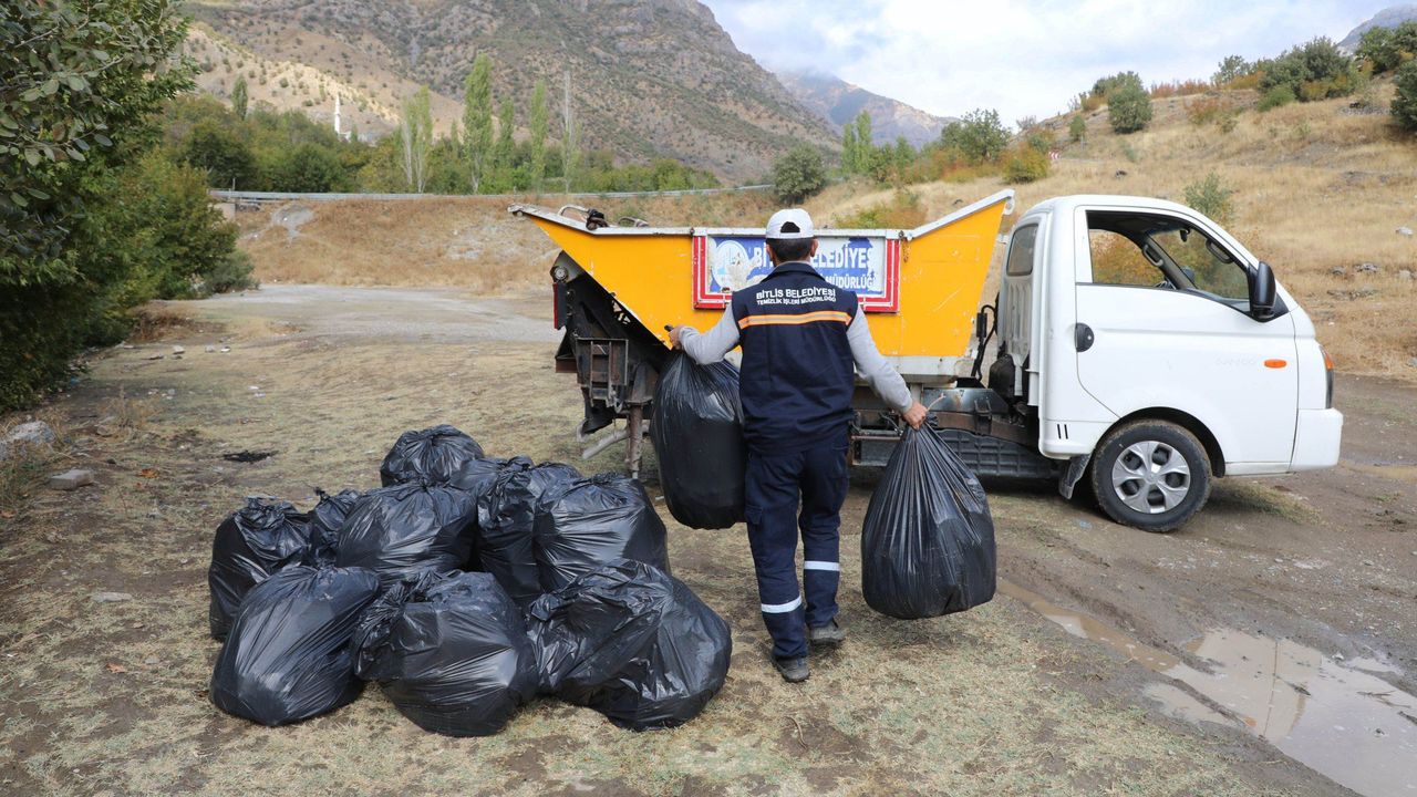 BİTLİS (AA) - Bitlis'te bir grup genç, Destumi Deresi'nin çevresindeki çöpleri topladı, belediye ekipleri poşetlere doldurulan çöpleri bölgeden aldı.