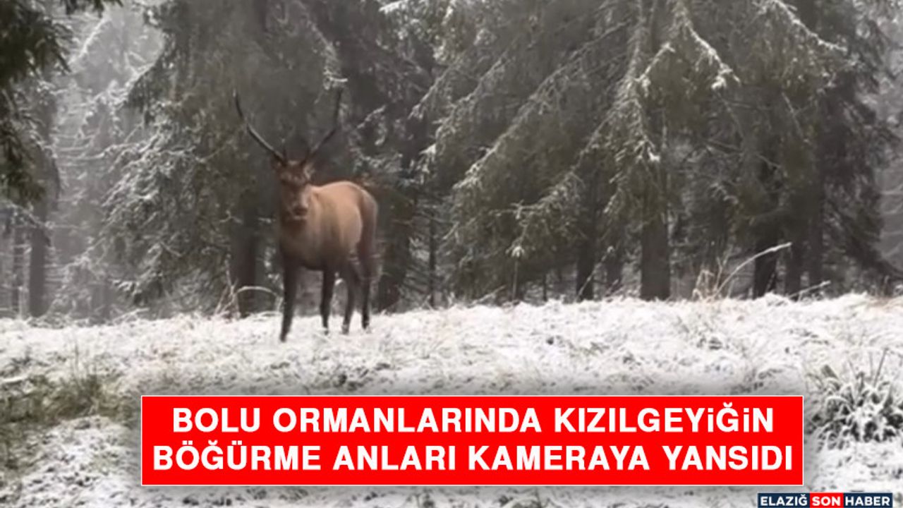 Bolu'nun yüksek kesimlerinde karla kaplı ormanlarda kızılgeyik objektiflere yansıdı. Karların arasında yürüyen geyiğin böğürme anları doğaseverlerin kamerasına takıldı. Soğuk havaların etkili olduğu Bolu'da kızılgeyik görüntülendi. Kar örtüsü üzerinde yürüyen geyiğin, çevreyi inleterek böğürdüğü anlar cep telefonu kamerasına kaydedildi.