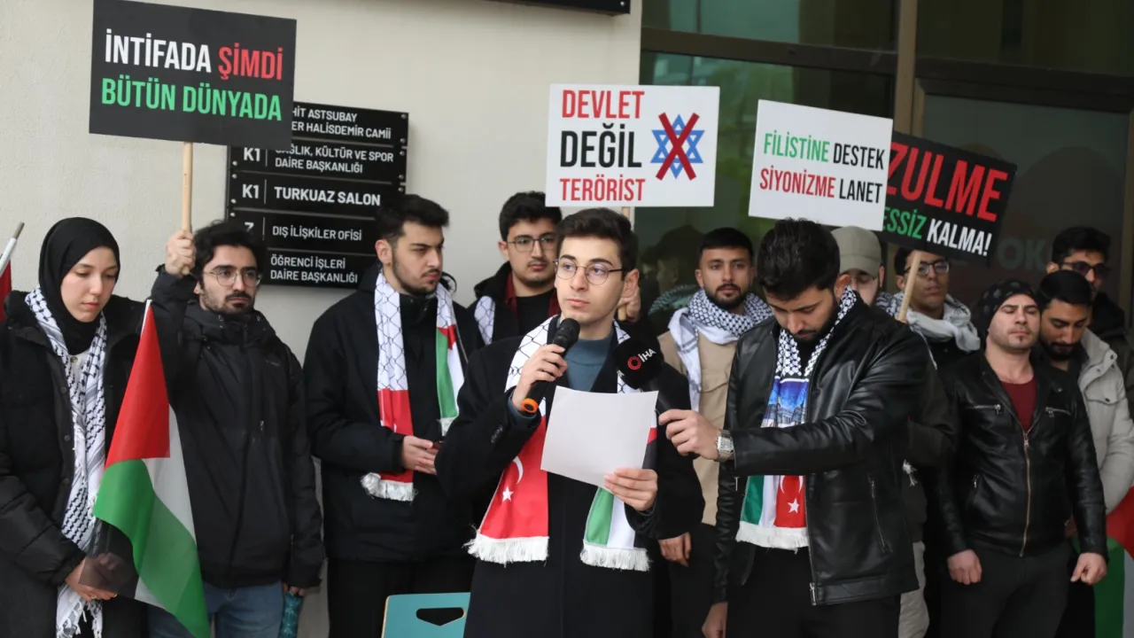 Bursa Teknik Üniversitesi öğrencileri, İsrail’in Filistin halkına yönelik aylardır düzenlediği ve şiddetini her geçen gün artırdığı saldırıları protesto etti.BURSA (İGFA) -İsrail’in Filistin’e yönelik saldırılarına ilk gününden itibaren tepkisini düzenlediği çeşitli programlarla dile getiren Bursa Teknik Üniversitesi (BTÜ), son günlerde şiddetini artıran saldırılara da sessiz kalmadı. Bu kapsamda BTÜ Öğrenci Fikir Platformu tarafından basın açıklaması ve protesto düzenlendi.